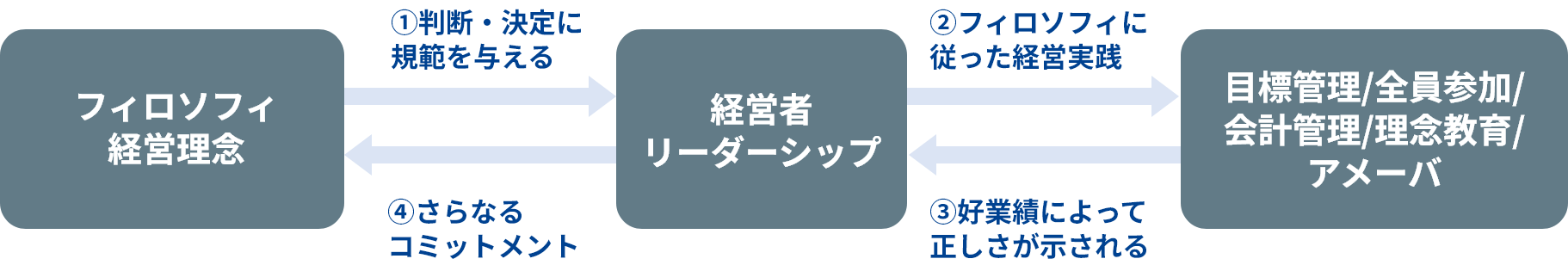 フィロソフィ・リーダーシップ・経営成果の相互強化サイクル